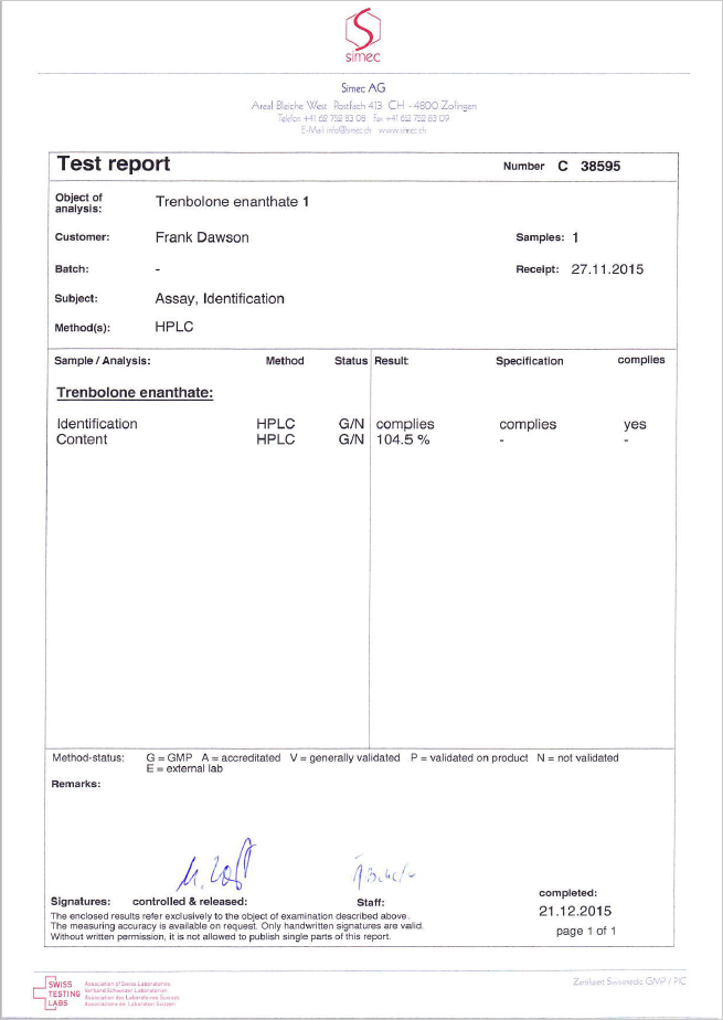 Awesome. I just bought a few of these on BF.Finally we received results from Simec for the next batch of items we sent to test. Now we received only 2 reports and both are for tranbolone enanthate.