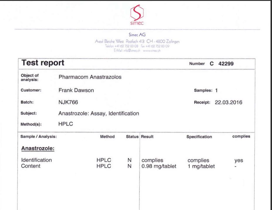 there is no way we have any impact on Simec. They are a certified lab and they even can stand in a court to confirm the results if needed, they would never counterfeit any results and risk their reputation, this is the same as the risk to get the lab closed and loose a job. Just impossible.I would absolutely agree with you except for one reason. It's the lab that Millard himself has chosen to do the anonymous Anabolic Lab testing. I have to believe that if that lab was in anyway not trustworthy Millard wouldn't use them because any dispute contesting their honesty would jeopardize the validity of and nullify the findings of the entire Alab project. If the lab in anyway skewed their findings, as in faked information because Pharmacom paid them off or anything of that nature, they would have much to lose. It wouldn't be hard for someone that had a bug up their ass to bring into question the labs validity. Cross testing using another lab and having conflicting results would easily start the conspiracy ball rolling. As far as the reports posted...I'm sure when a member sends in the compound to be tested he receives a copy of the report as well so the reports posted would have to be accurate or entirely faked and I already expressed my thoughts on that. Obviously I have already considered what you are saying and these were my thoughts at the time. Or maybe I'm just completely naive...