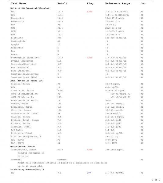 Injected 10iu Pharmatropin in left delt 3 hours and 5 minutes prior to blood draw. Result: 31.3