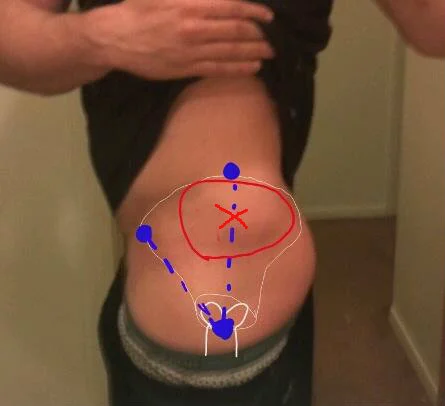 I'll give you a little tip for hitting the VG: stick your leg out to the side and flex it. Now take the cap of your drawing needle and press the back of it onto the muscle that will pop out near the crest of your hip (before you swab the site with alcohol). It will leave a little red ring. Pin that spot.