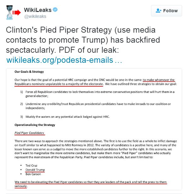 Clinton called this her “pied piper” strategy, that intentionally cultivated extreme right-wing presidential candidates and that would turn the Republicans away from their more moderate candidates. This enlisted mainstream media who then focused to Trump and raise him above all others assuming that would help Hillary for who would vote for Trump. This was a deliberate strategy all designed to propel Hillary to the White House.