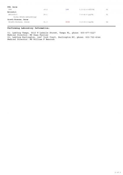Injected 10iu Pharmatropin in left delt 3 hours and 5 minutes prior to blood draw. Result: 31.3